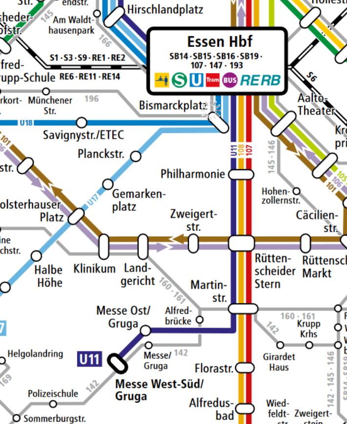 From the arrival at Terminals A, B and C take the SkyTrain to Düsseldorf Airport Station. Go on with one of several trains to Essen HBF (Essen Main Station) like the RE1, RE2, RE6 or S1. It will take you about 30min(RE) to 1h (S1). On the Website of VRR you can find your connection.By Train